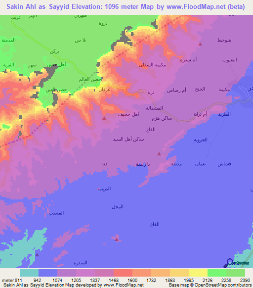 Note:Please note that Sakin Ahl as Sayyid,Yemen Elevation Map is in beta.