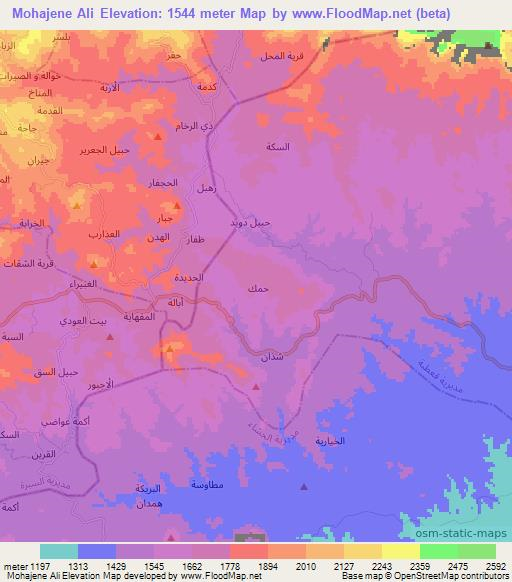 Note:Please note that Mohajene Ali,Yemen Elevation Map is in beta.