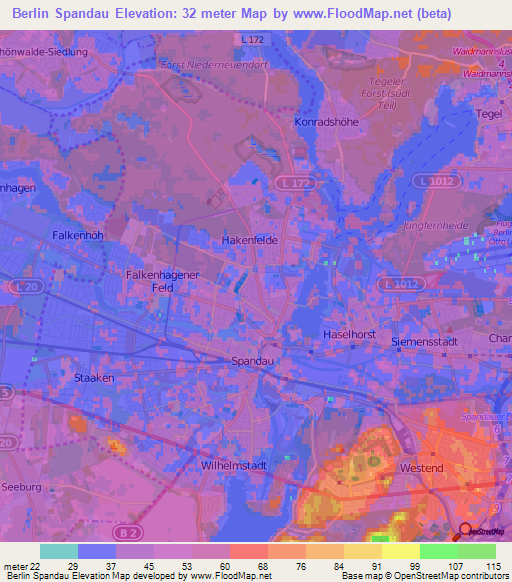 Note:Please note that Berlin Spandau,Germany Elevation Map is in beta.