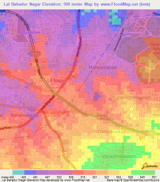 Note:Please note that Lal Bahadur Nagar,India Elevation Map is in beta.