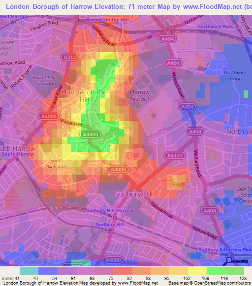 Note:Please note that London Borough of Harrow,UK Elevation Map is in beta.
