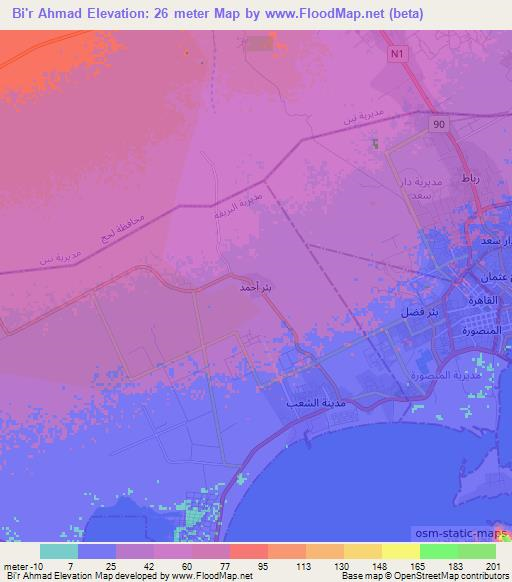 Note:Please note that Bi'r Ahmad,Yemen Elevation Map is in beta.