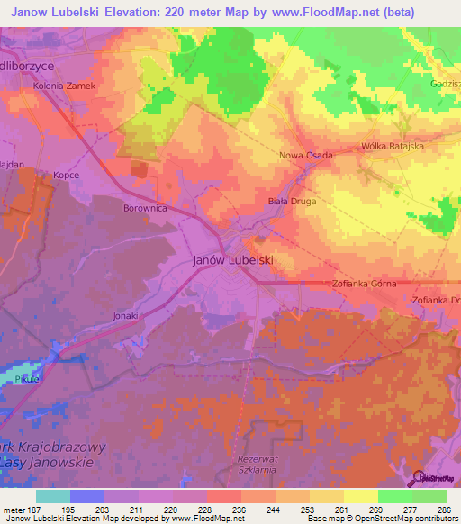 Note:Please note that Janow Lubelski,Poland Elevation Map is in beta.