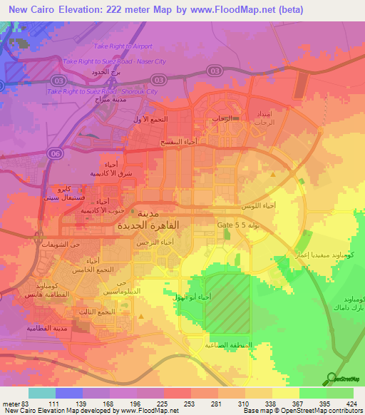 Note:Please note that New Cairo,Egypt Elevation Map is in beta.