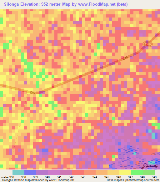 Below is the Elevation map of Silonga,Namibia, which displays range of elevation with different colours.