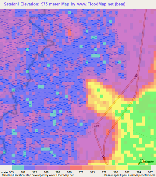 Note:Please note that Setefani,Namibia Elevation Map is in beta.