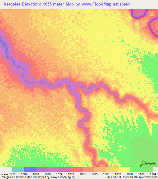 Below is the Elevation map of Vergelee,South Africa, which displays range of elevation with different colours.