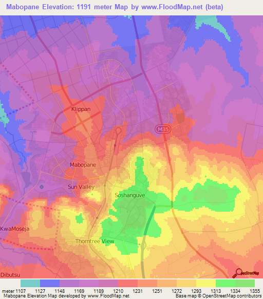 Note:Please note that Mabopane,South Africa Elevation Map is in beta.