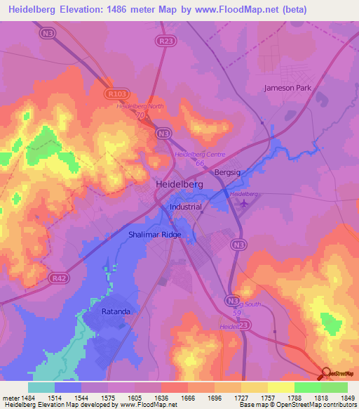 Note:Please note that Heidelberg,South Africa Elevation Map is in beta.