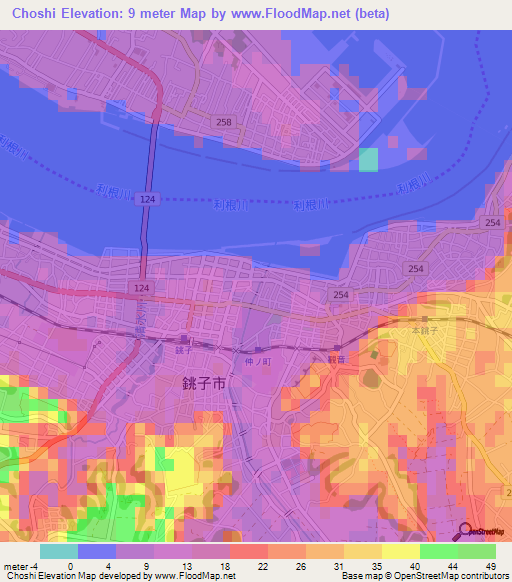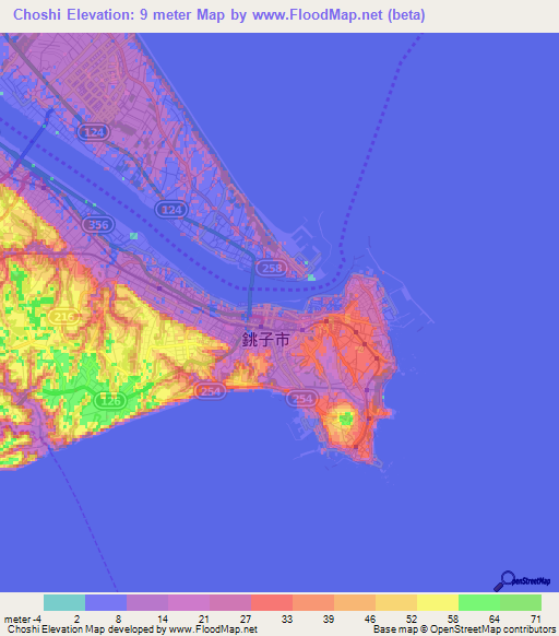 Note:Please note that Choshi,Japan Elevation Map is in beta.